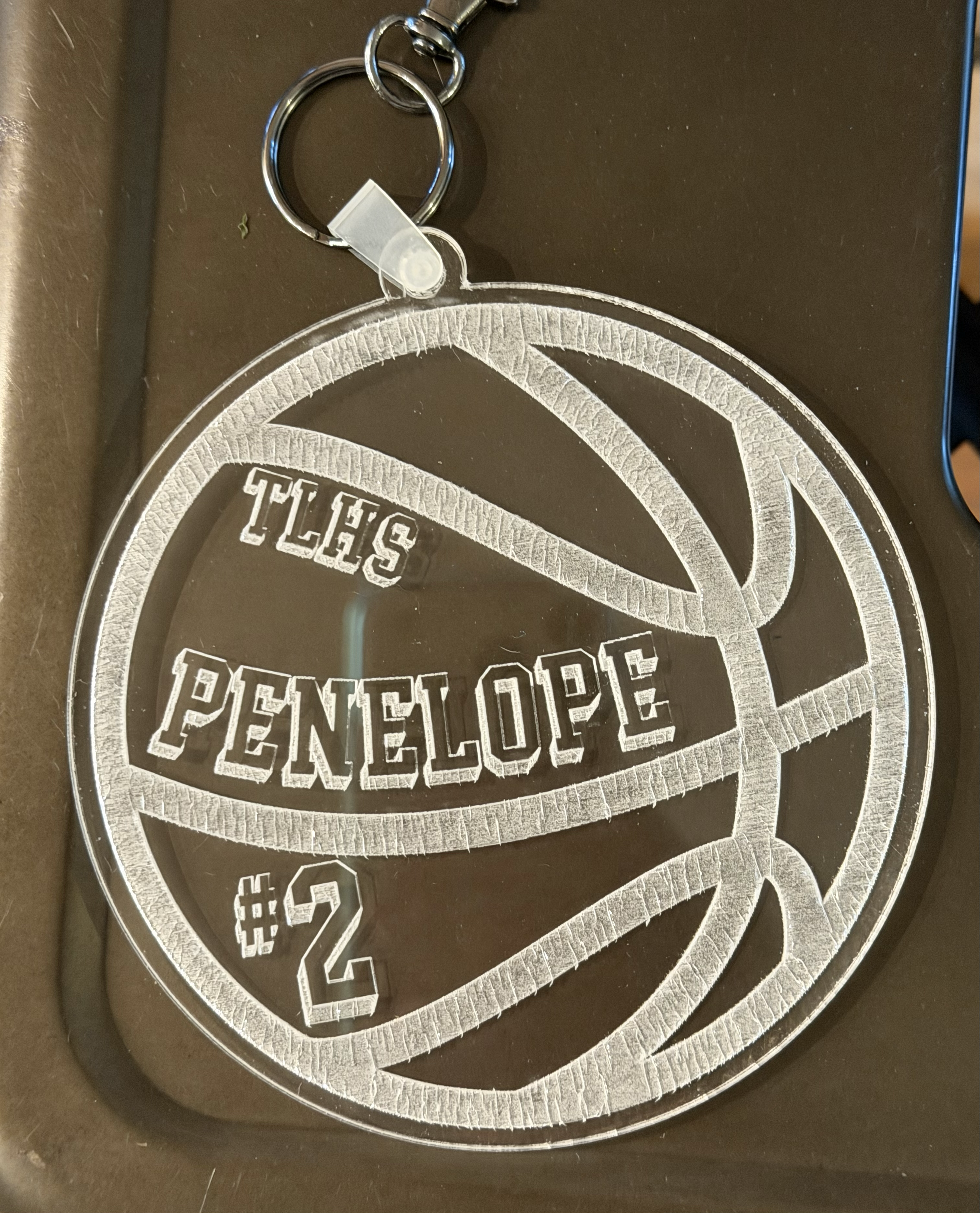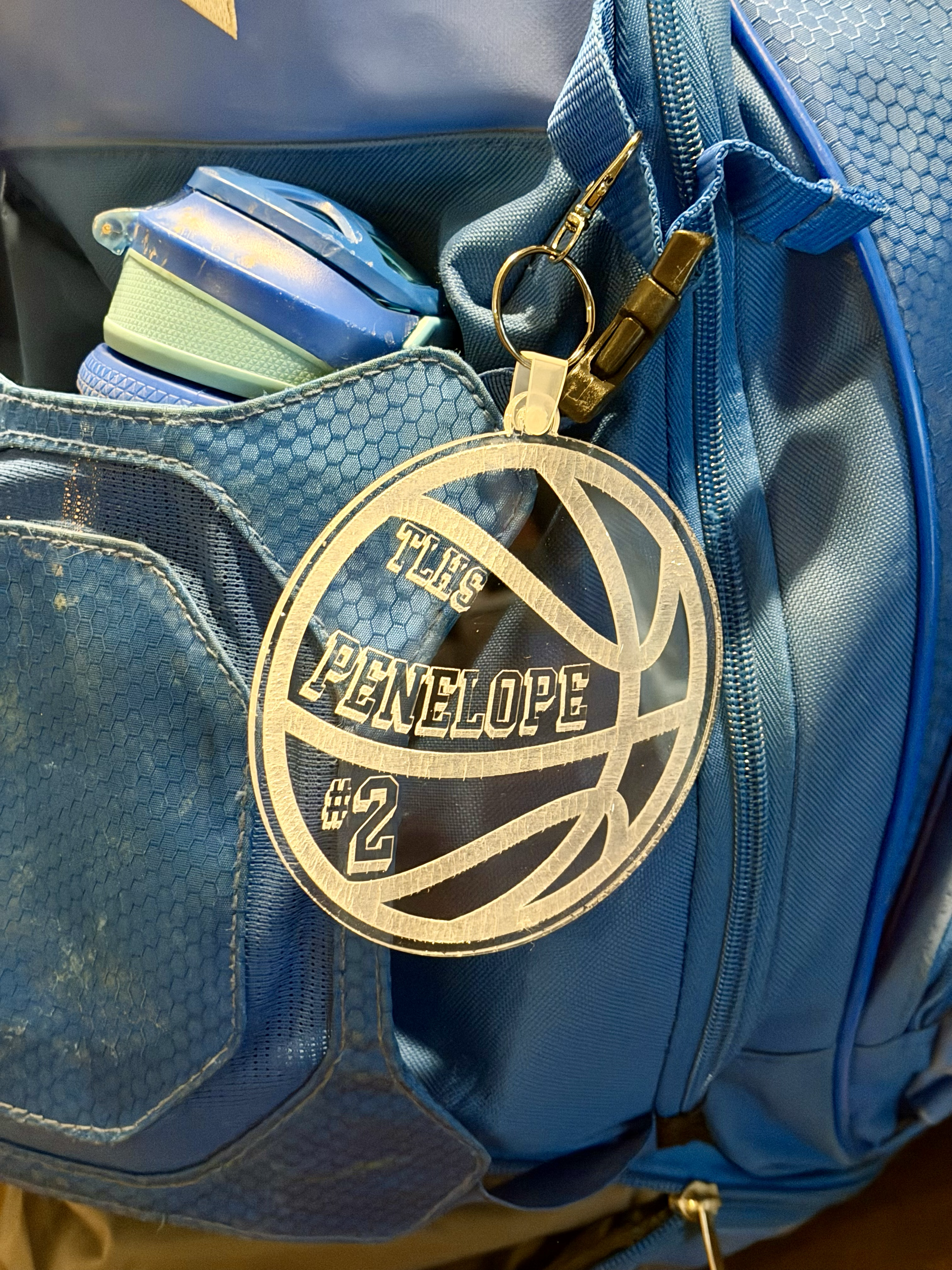 Made from durable clear acrylic and cut into a bold basketball design, this tag is lightweight but tough enough to handle daily practices, tournaments, and the occasional gear bag toss.